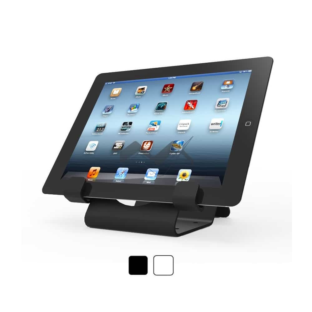 Unlike most tablet stands this iPad holder is positioned at a 45-degree angle for optimal viewing and has an open back design for locking and security cables. Incorporating a patented balance stabiliser, the tablet stand itself also serves as a cable trap to secure your cords.