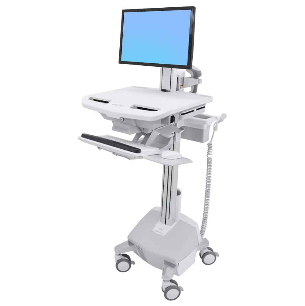 StleView medical cart yang serbaguna dan praktis dengan electric lift menawarkan penyesuaian ketinggian sebesar 20 inci (51 cm) untuk menggerakkan permukaan kerja dan keyboard secara bersamaan guna menyesuaikan alur kerja yang berubah-ubah. Dirancang untuk semua perawat, pengangkat elektrik ini dapat menghilangkan tenaga pengguna dan dapat menopang beberapa laci serta beban yang lebih berat. Dengan sekali pencet tombol, perawat dapat berpindah dari posisi duduk ke berdiri untuk mendapatkan kenyamanan dan kesesuaian ergonomis yang melebihi kecepatan dan jangkauan penyesuaian dari kereta elektrik pesaing kami.
