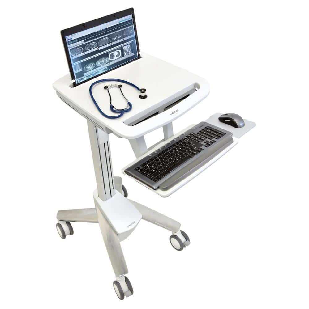 Cart inovatif, ergonomis, dan mudah digerakkan ini dapat bergerak dengan mudah di seluruh fasilitas kesehatan untuk memudahkan dokumentasi. Cart ini dilengkapi dengan penyesuaian ketinggian duduk-ke-berdiri dan keyboard tray yang dapat disesuaikan.