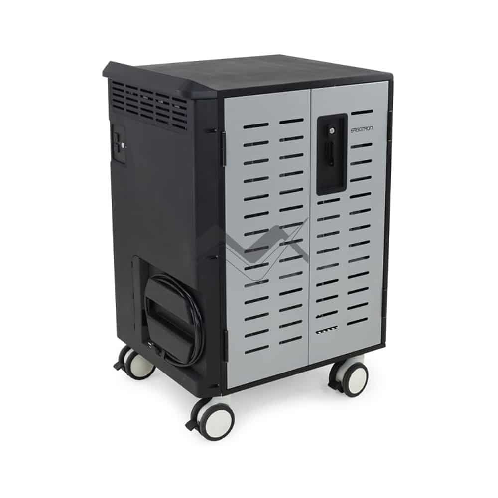 The compact 30''W x 26''D (77 x 66 cm) footprint of this small charging cart saves valuable classroom space and allows the cart to be easily maneuvered through crowded area, making it as an ideal charging cart for school.
